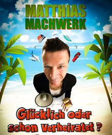 Freuen Sie sich auf rasant, knalligen Humor und Fragen wie: Machen Partner glücklich? Und wenn ja, wie viele? Versaut Geld den Charakter, auch wenn man keinen hat? Und ist das Glück des Künstlers der Applaus oder haben Künstler auch Hunger? Beglücken Sie sich mit „Geheimtipp“ Matthias Machwerk und lachen Sie sich zum Happy End, auch ohne Thai-Massage.